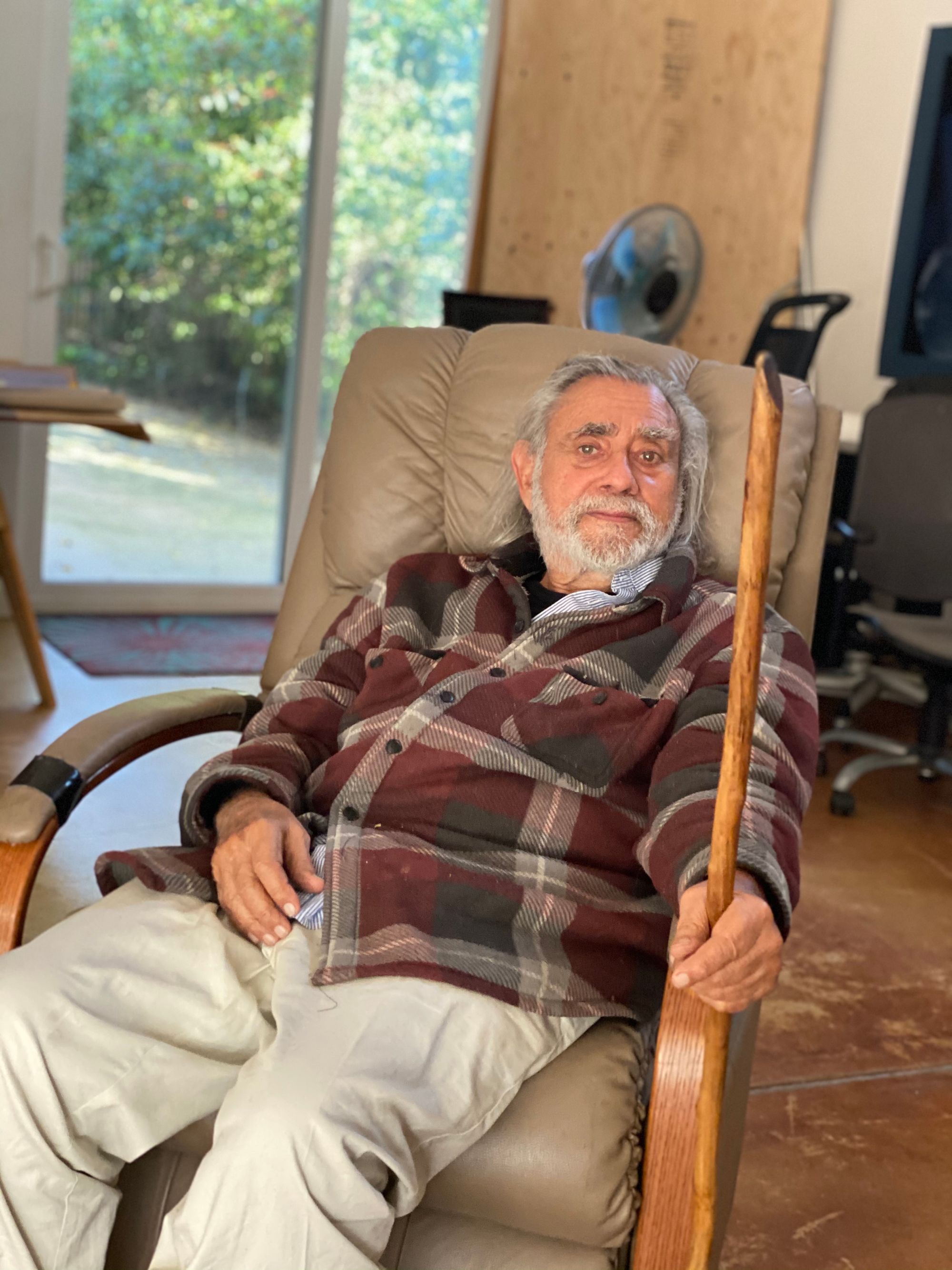 Newton Harrison at his home studio in Santa Cruz, CA, July 2022. Photos by Dawn Danby and David McConville.